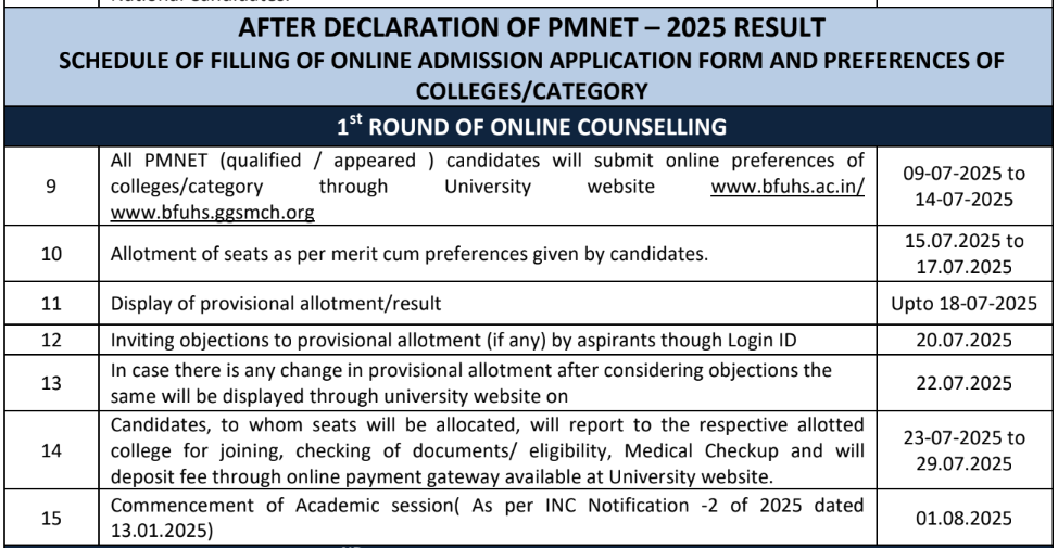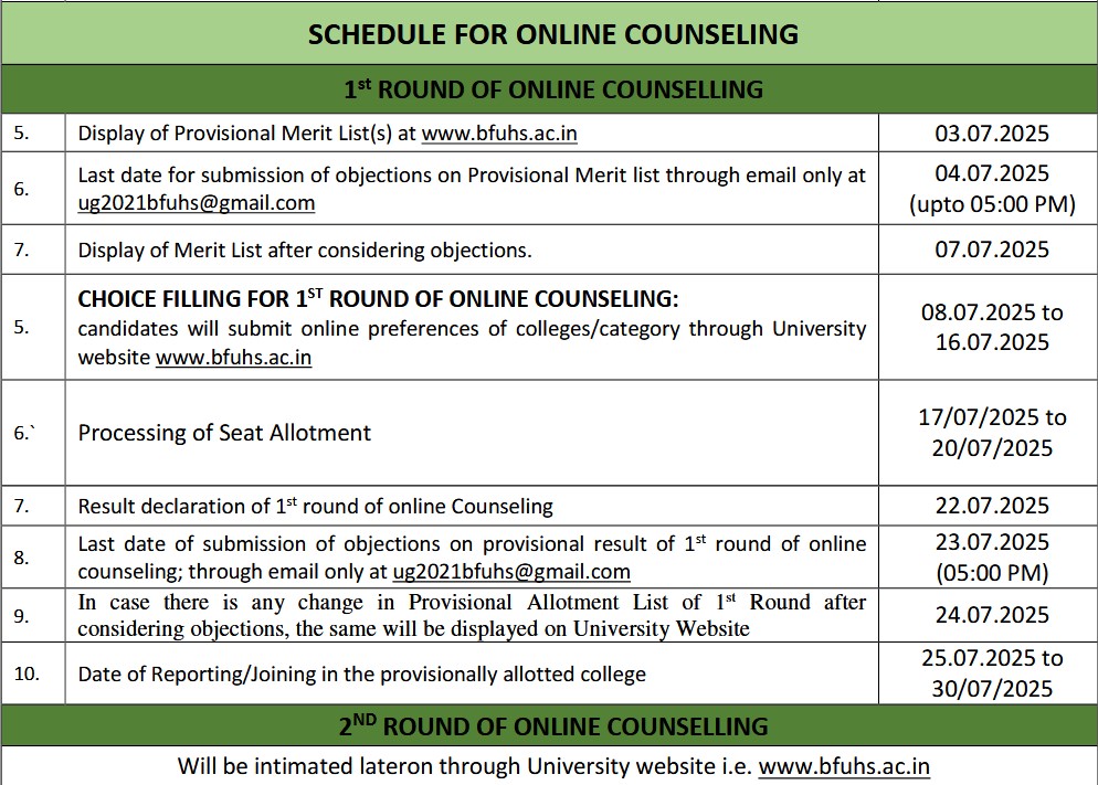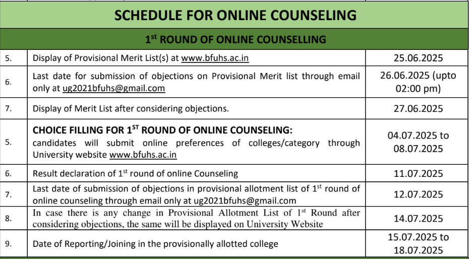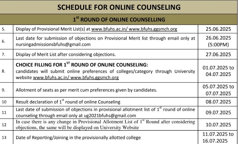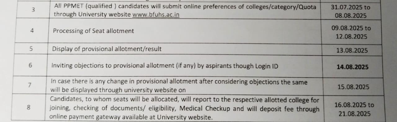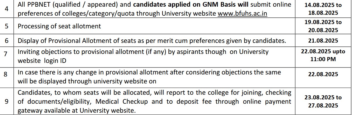 Online Choice Filling Start From 09-07-2025 for Bsc Post Basic Course 2025-26 Round 1st