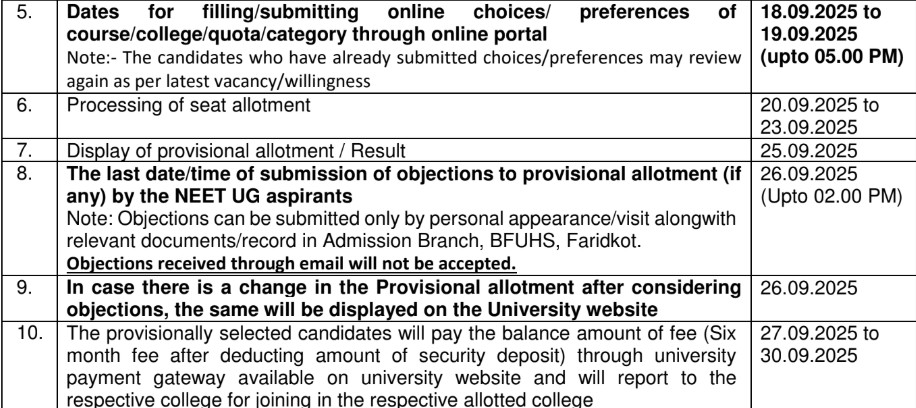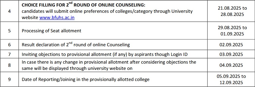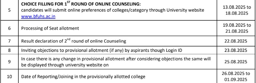 Online Choice Filling Start From 22-08-2025 to 29-08-2025 for BPT BMLS BScAPB Courses 2025-26 Round 2nd
