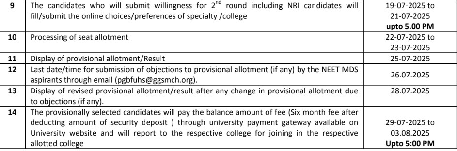 Online Choice Filling Start From 29-07-2025 for Post Gradute Dental Course (MDS) 2025-26 Round 2nd