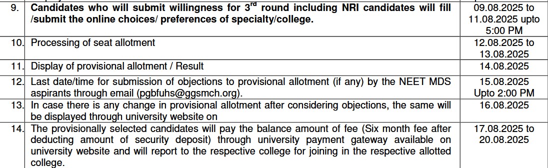 Online Choice Filling Start From 09.08.2025 to 11.08.2025 upto 5:00 PM for Post Gradute Dental Course (MDS) 2025-26 Round 3rd