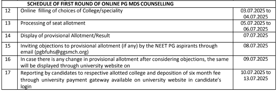 Online Choice Filling Start From 03-07-2025 for Post Gradute Dental Course 2025-26 Round 1st