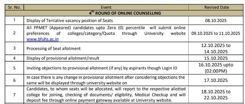 Online Choice Filling Start From 09-10-2025 to 11-10-2025 for Bsc Nursing Course 2025-26 Round 4th