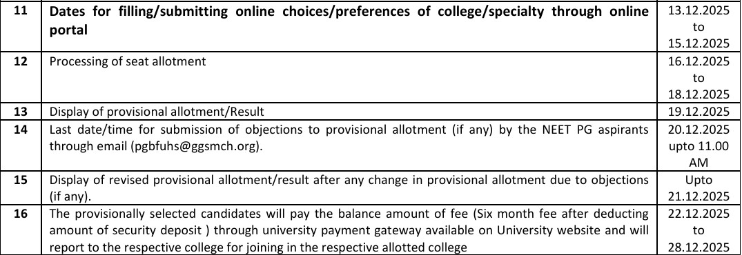 Online Choice Filling Start From 13-12-2025 to 15-12-2025 for MD/MS/PG Diploma, DNB, Post Graduate Diploma in Sports Medicine and Six months training in Ultrasonography Courses 2025-26 Round 2nd