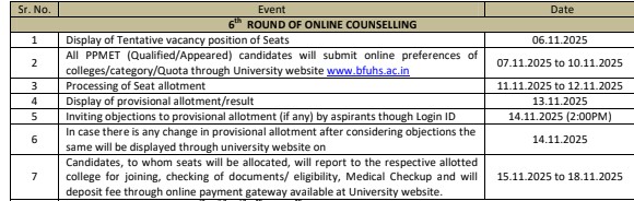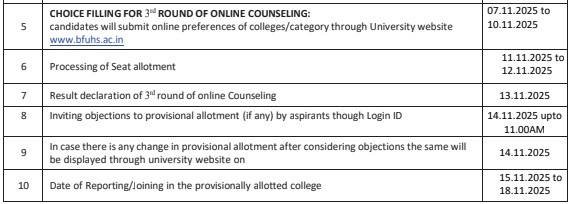Online Choice Filling Start From 07-11-2025 to 10-11-2025 for Bsc ALLIED HEALTHCARE COURSES, 2025-26 Round 3rd